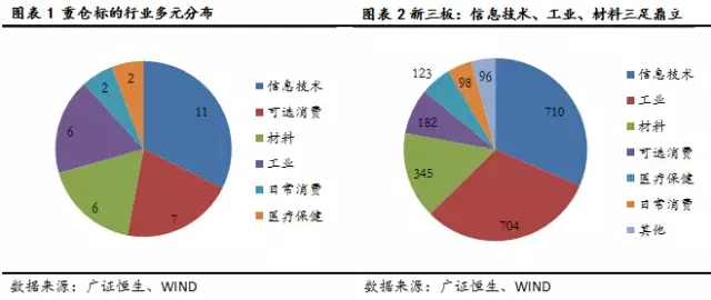 行业分布多元化,信息技术拔得头筹。从行业分布来看,34家标的中最多来自信息技术,为11家,可选消费、材料、工业分别以7家、6家、6家次之。与新三板挂牌企业整体行业分布相比,这三家机构整体对可选消费行业青睐有加,尤其是中科招商,其10家重仓标的中有3家可选消费行业标的。